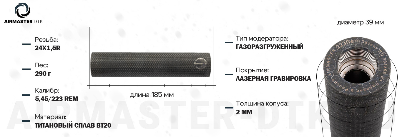 Штатная внутренняя резьба 24×1,5 позволяет использовать ДТК на разных карабинах — достаточно сменить титановый адаптер под нужную резьбу ствола.